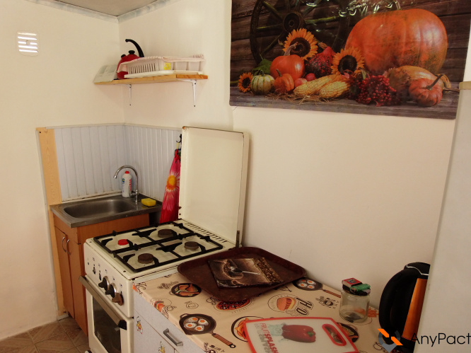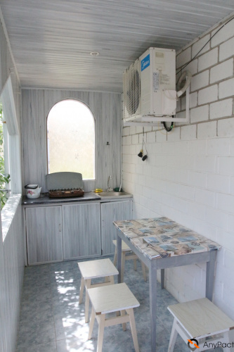 - мини-кухня на террасе (раковина, стол, посуда в комплекте, двухкомфорочная газовая плита);